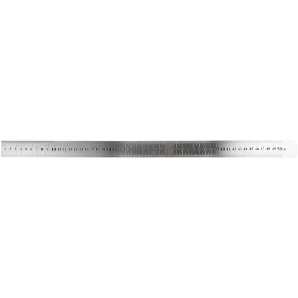 Règle plate métallique avec graduation métrique de chaque côté.