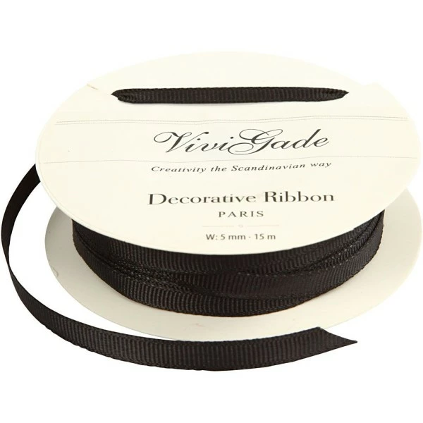 Description de Ruban gros grain – 5 mm x 15 m – Noir