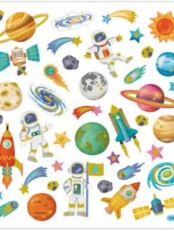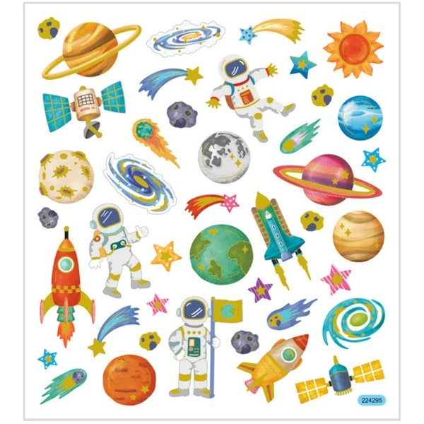 Motifs autocollants en film plastique fin et légèrement transparent avec des détails en feuille métallique.