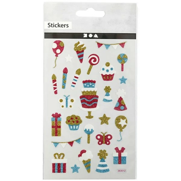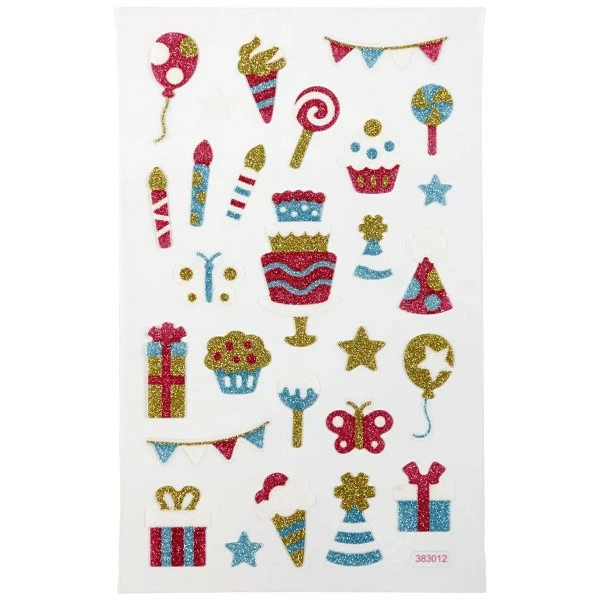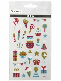Illuminez tous vos projets créatifs et tout ce qui vous plaît avec ces 27 autocollants pailletés de 1 à 3,5 cm. Ces petits autocollants colorés aux motifs Anniversaire ont la particularité d’être pailletés, iIs donneront du relief à vos créations DIY en quelques secondes.