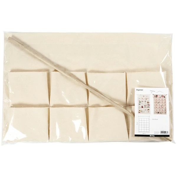 Ce petit organiseur mural en tissu de34 x 46 cm composé de 7 poches sera parfait pour organiser et ranger vos petits objets du quotidien.