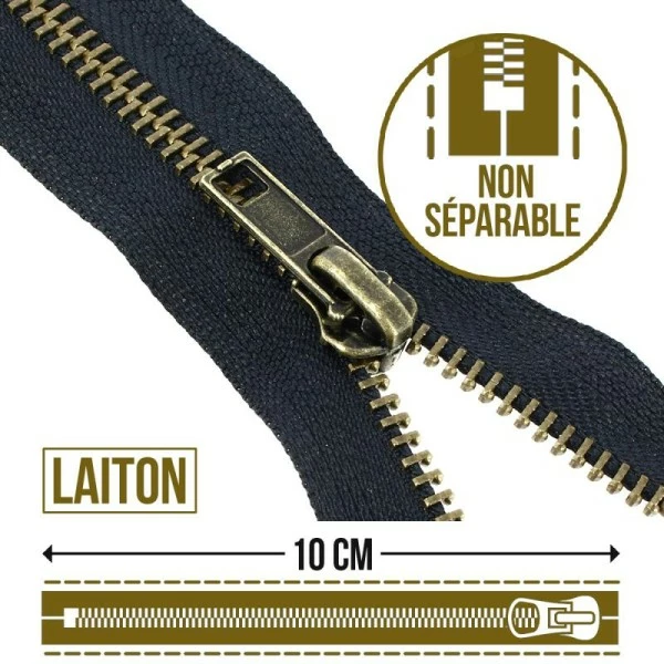 Cette fermeture en métal non séparable de 10 cm sert essentiellement à réparer les pantalons ou à confectionner des objets comme des pochettes, trousses, etc… En effet, grâce à sa dimension pratique de 10 cm, cette fermeture à glissière vous accompagnera dans toutes vos créations de couture !