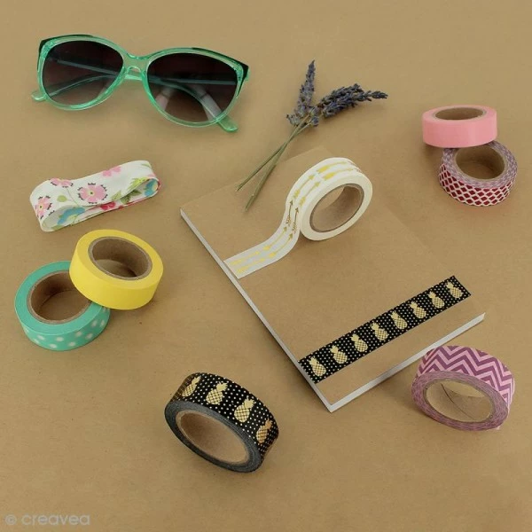 C’est un rouleau de ruban adhésif décoratif qui peut s’appliquer sur toutes sortes de supports non poreux. Le Masking Tape ou Queen Tape est aussi appelé Papier Washi, à cause de son origine japonaise. Vous pouvez notamment l’utiliser pour embellir des cartes et pages de scrapbooking, décorer un cahier ou un stylo, personnaliser une boîte, apporter votre propre touche à un autre support, sublimer un emballage cadeau, etc. Avec ce type de masking tape Foil (métallisé), les possibilités créatives & décoratives ne devraient pas manquer !