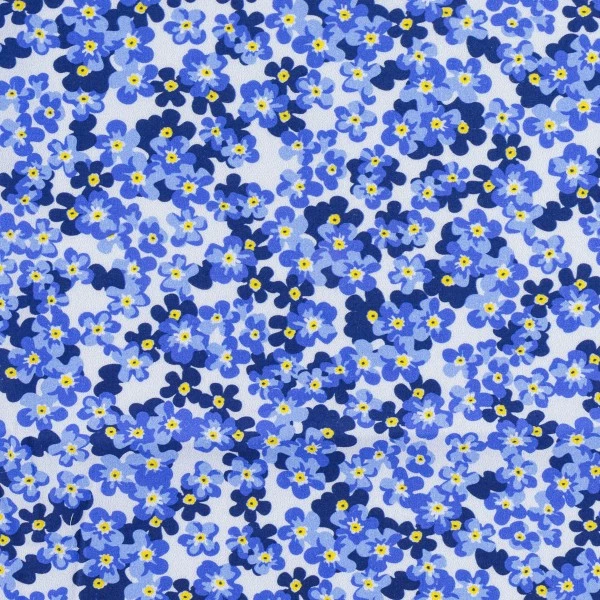 Données techniques pour Tissu Popeline de coton – Fleurs Bleues – Vendu par 10 cm
