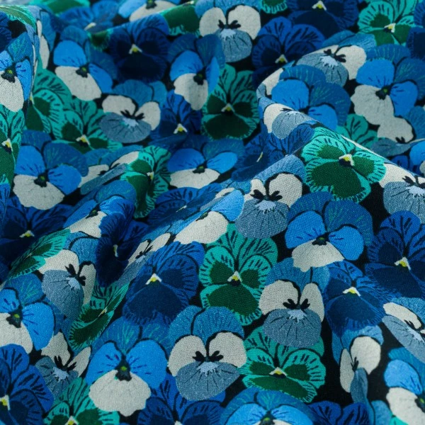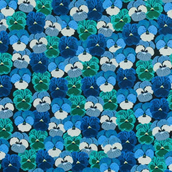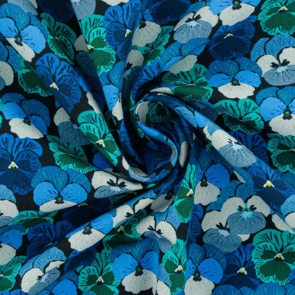 Ce tissu léger 100% coton Pensées bleues appelé aussi popeline de coton est un tissu polyvalent et sera parfait pour la plupart de vos travaux de couture.
