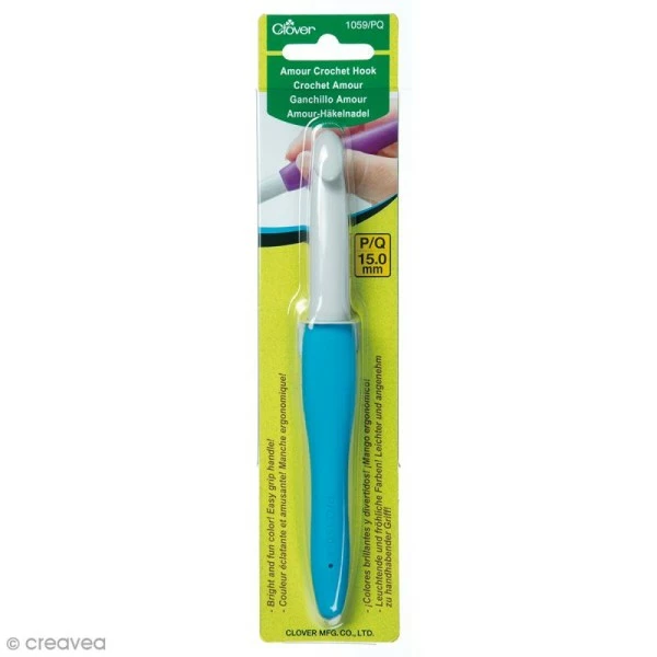 Sa jolie couleur Bleu ciel et son design ergonomique en font un outil de choix dans la pratique des arts du fil. Le crochet Clover Amour 15 mm vous facilitera la vie !