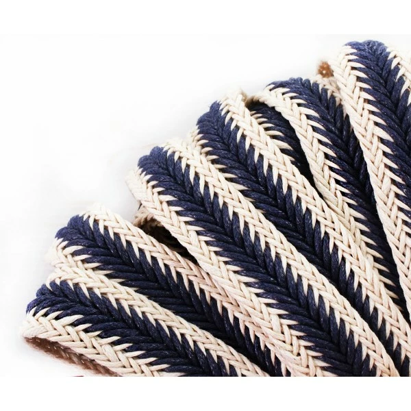 Description de 1yrd 0,9 m Beige clair Bleu Foncé Draps en Coton de Cordon Tricoté Ruban Tissu à Plat Cordon Macrame