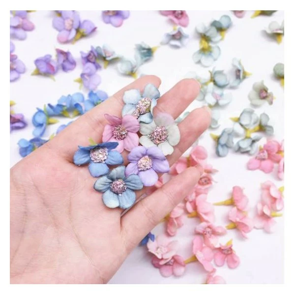 Données techniques pour 25pcs Violet Forget Me Not Fabric Flowers, Scrapbooking, Patchwork, Décoration de Pâques, Printemps