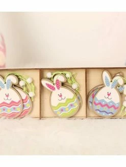 Description de 3pcs Mix Easter Bunny Egg Decorations suspendues en bois, Wreath Craft, Décor maison, Party Diy, Chi