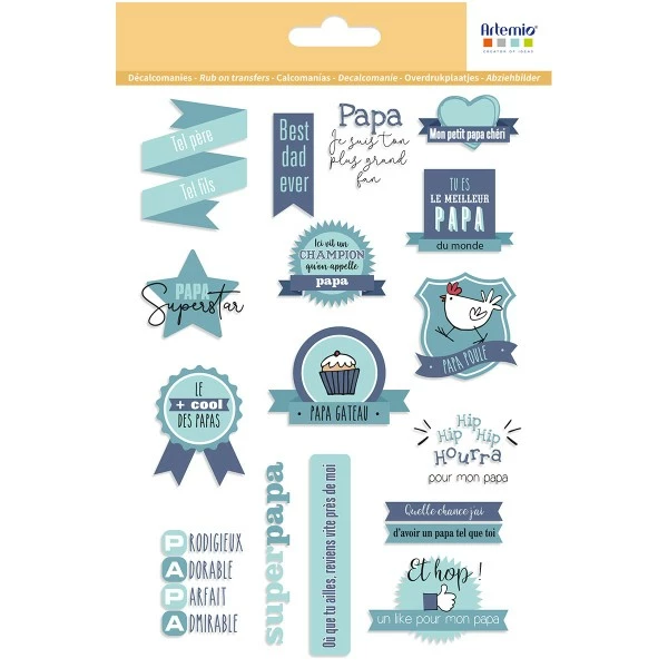 Description de Décalcomanies Artemio – Collection Fête des pères – 17 motifs
