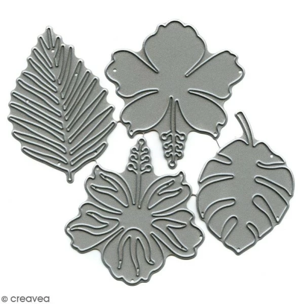 - Dimensions4,1 x 3,9 cm (feuille exotique) , 4,9 x 4,9 cm (fleur 1) , 5 x 4,8 cm (fleur 2), 5,4 x 4 cm (feuille)