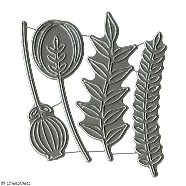 - Dimensions1.9 x 7.7 cm (fleur 1), 2.7 x 7.9 cm (fleur 2) , 1.8 x 7.9 cm (feuilles) , 3.1 x 7.8 cm (grandes feuilles)