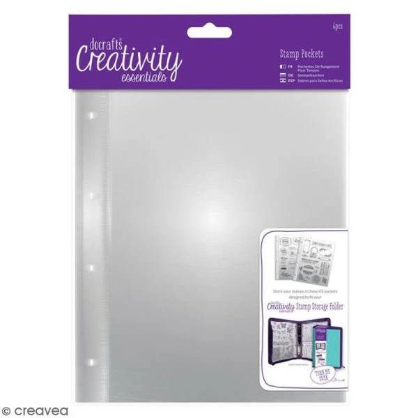 Ce lot de pochettes transparentes A5 Docrafts sera parfait pour ranger tous vos tampons transparents ! De plus, ces feuilles plastifiées possèdent des trous perforés, qui vous permettront de les ranger dans un classeur ! Ainsi, vous aurez à porter de main, vos tampons, rangés et classés ! Pratique non !