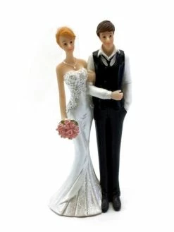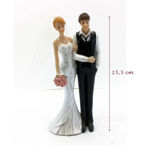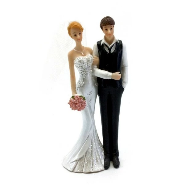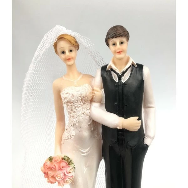 Description de Couple de mariés se tenant le bras, haut.15,5 cm, figurine traditionnelle, pièce montée, mariage
