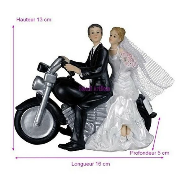 Grand Couple de mariés à Moto en résine pour décoration de Mariage, figurine Motards 13 x 7 x 16 cm