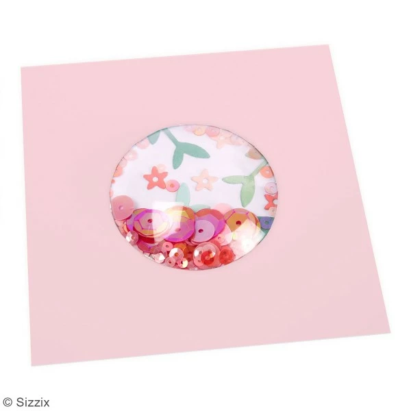 Vous l’aurez compris vous pourrez confectionner facilement des cartes Shaker box appelées aussi Cartes à secouer et y insérer des sequins, paillettes ou des perles ! Ces dômes 3D Shaker sont compatibles avec le set de matrices Sizzix Framelits Cercles.