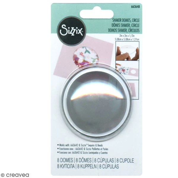 Description de Dômes Shaker Sizzix – Cercles – 5 x 5 x 1,2 cm – 8 pcs