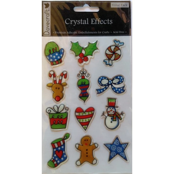 Stickers crystal effet transparent Noël DOVECRAFT 12 stickers crystal, ces stickers ont un effet de volume, ils sont très jolis pour embellir vos pages de scrapbooking ou vos cartes sur le thème de Noël.