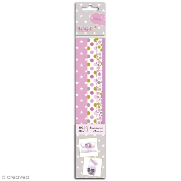 - Motifs fleuris coloris rose, blanc et vert (3 imprimés + 2 unis soit 5 designs différents x 20 exemplaires chacun)