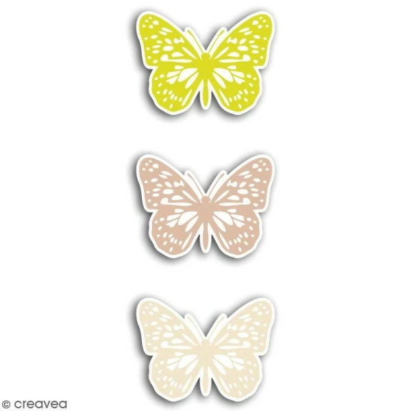 Données techniques pour Die cuts Papillons taupes, verts et beiges – 48 x 36 mm – 24 pcs
