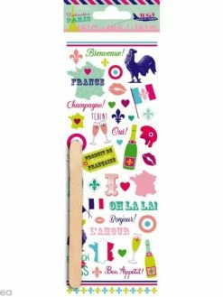 Planche 7,5 x 20 cm de rub-ons transferts Toga issus de la collection France de la marque. Ces décalcomanies en couleur sur le thème du voyage et des vacances, apporteront une touche de fantaisie à votre création scrapbooking ou carterie. Vous trouverez sur cette planche les motifs suivantsCoq, carte de France, bonnet phrygien, tête de Marianne, drapeau français, etc.