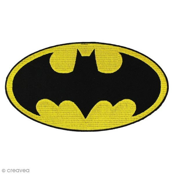 Joli écusson brodé Logo Batman ovale de 20 x 11 cm à thermocoller sur vos vêtements et accessoires textiles. Il est issu de la licence Batman, et sera parfait pour les enfants. Ce patch thermocollant est fabriqué à base de feutre et de fils brodés. Il est idéal pour customiser un tee-shirt ou une veste, et pour réparer un tissu en masquant un accroc.