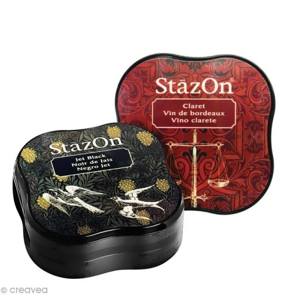 L’encre StazOn demeure de façon permanente sur de nombreux types de surfaces telles que le papier, le bois ou le carton et sur bon nombre de surfaces non poreusespapier glacé, verre, faïence, métal, papier aluminium, acrylique, cuir, céramique, plastique, etc. A la différence des encreurs Colorbox et Chalk, dont le coussin d’encrage est en mousse de polyuréthane, les encreurs StazOn sont équipés d’un coussin d’encrage en feutre, plus rigide.