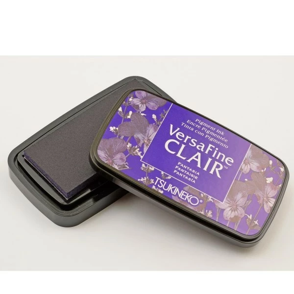 Encre Versafine claire Fantasia – Tsukineko L’encre est sans acide, résistante à l’eau et à la lumière. Elle est facile à nettoyer, grâce à l’ai de d’un tapis et d’un nettoyant toutes encres. Elle existe en 24 couleurs.