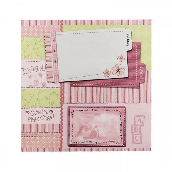 Description de Feuille de papier – Scrapbooking – Rose – Bébé fille – Naissance – 30,5 x 30,5 cm