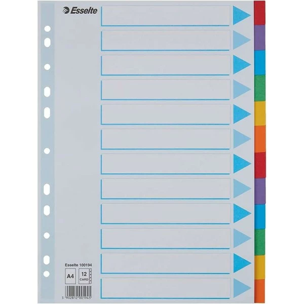 ESSELTE – Intercalaires en carton uni – A4 – 12 touches
