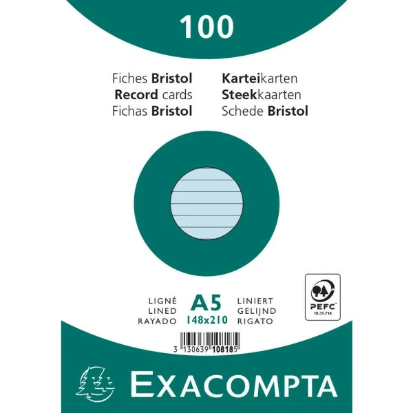 EXACOMPTA – Fiches bristol – A5 – Ligné – Bleu azur