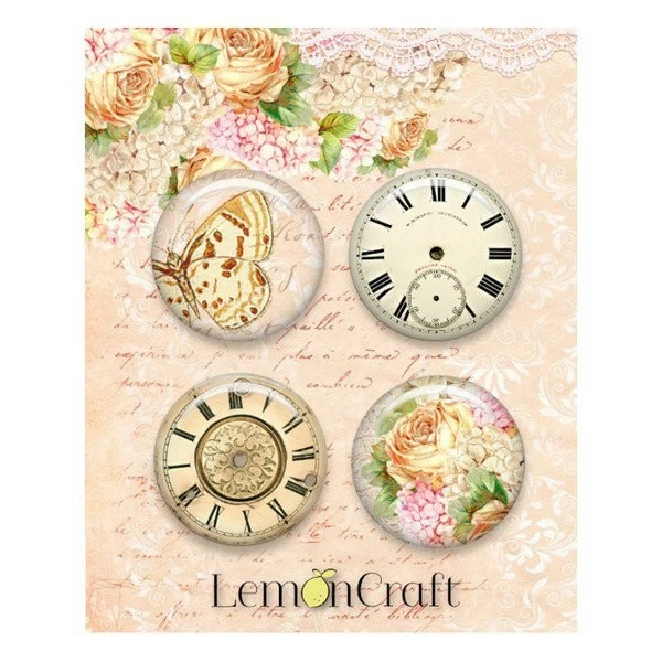 Description de 4 badges métal décoration scrapbooking 2,5 cm LemonCraft GROW OLD WITH ME