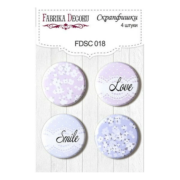 Description de 4 badges métal décoration scrapbooking Fabrika Décoru LOVE SMILE 018