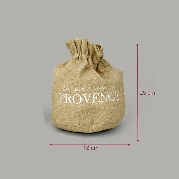 Description de Pochon Beige écriture Blanche en Lin, Provençal, dim.25 x 18 cm, décoration vintage