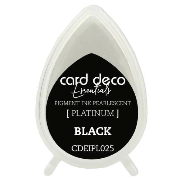 Card Deco Essentials Platinum est une encre nacrée qui peut être utilisée sur de nombreux matériaux différents, y compris le papier foncé. L’encre donne une impression nette. L’encre convient au gaufrage à chaud (avec de la poudre à embosser et un outil thermique) . L’encre peut être utilisée sur des surfaces lisses (papier brillant, mica, vélin, métal, cuir, etc.) mais a ensuite un temps de séchage légèrement plus long. Disponible en 32 couleurs