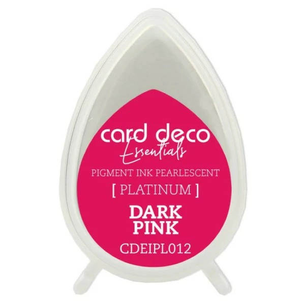 Card Deco Essentials Platinum est une encre nacrée qui peut être utilisée sur de nombreux matériaux différents, y compris le papier foncé. L’encre donne une impression nette. L’encre convient au gaufrage à chaud (avec de la poudre à embosser et un outil thermique) . L’encre peut être utilisée sur des surfaces lisses (papier brillant, mica, vélin, métal, cuir, etc.) mais a ensuite un temps de séchage légèrement plus long. Disponible en 32 couleurs