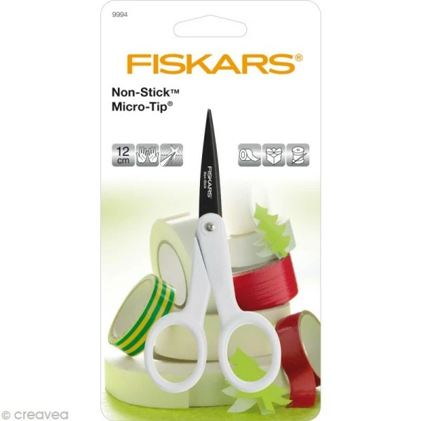 Très pratiques, les ciseaux de précision Fiskars anti-adhésifs de 12 cm vous permettront de découper les matières collantes facilement, comme des étiquettes, des autocollants, du papier pailleté ou du ruban adhésif. Ils vous seront particulièrement utiles en scrapbooking et pour tous les travaux minutieux.