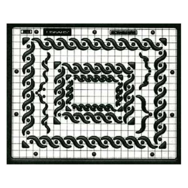 Pochoir Shapeboss FISKARSrectangle wave Un gabarit qui s’adapte sur la SHAPEBOSS de FISKARS et qui permet de pratiquer l’embossage à sec, ou gaufrage. Soulevez le pochoir transparent du haut, placez le Bristol entre les 2 pochoirs, rabaissez le pochoir et alignez votre bristol dans la grille. Ajoutez davantage de chevilles au besoin pour maintenir les pochoirs en place; Le gaufrage consiste à créer une indentation à l’arrière d’un papier Bristol ou de tout autre matériau afin de la faire ressortir du côté verso. C’est pourquoi le côté recto de votre papier doit être orienté vers le bas sur le plateau. Commencez le gaufrage en traçant autour d’une forme à l’aide d’un stylo à gaufrage. Il n’est pas nécéssaire de remplir la totalité du motif. Tracez uniquement le bord extérieur du motif en appliquant une pression régulière vers le bas afin de renfoncer le papier bristol.
