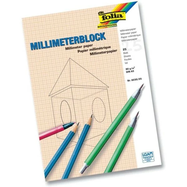 FOLIA – Bloc de papier millimétré – 80 g./m² – A3 – Bistre