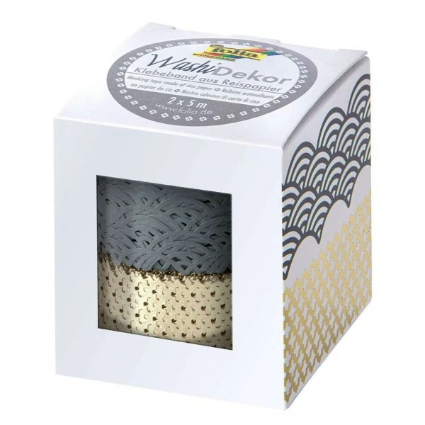 FOLIA – Bordure décorative décor Washi, set de 2 – Gris/Or