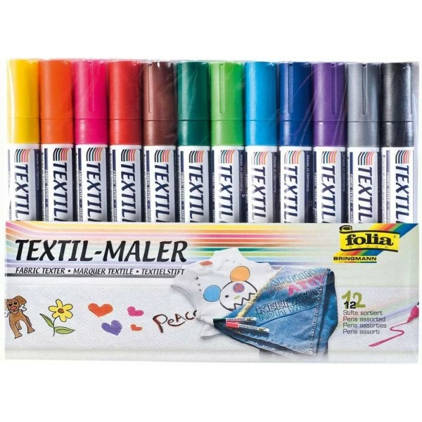 FOLIA – Marqueur pour textiles – Set de 12 – Assortis