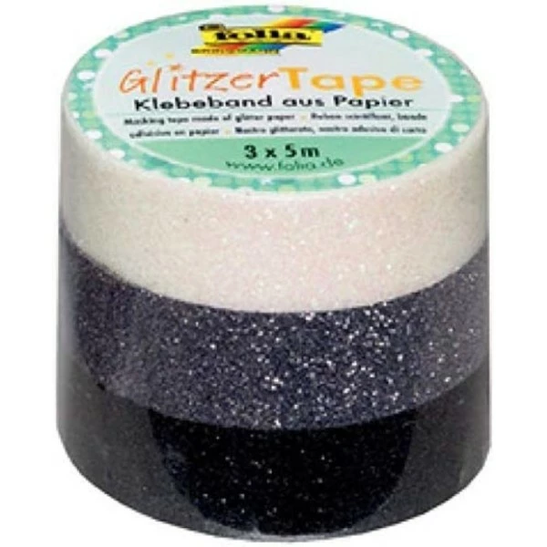FOLIA – Ruban adhésif “Glitter-Tape”, blanc / gris / noir