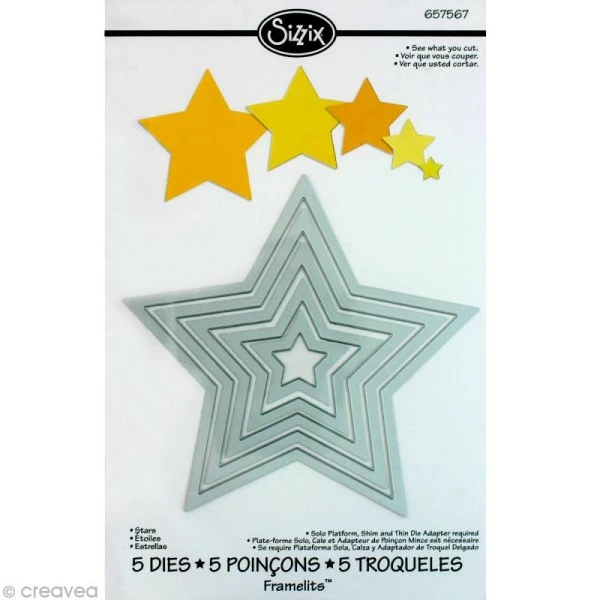Données techniques pour Framelits Sizzix – Kit de gabarits Etoiles – 5 pcs