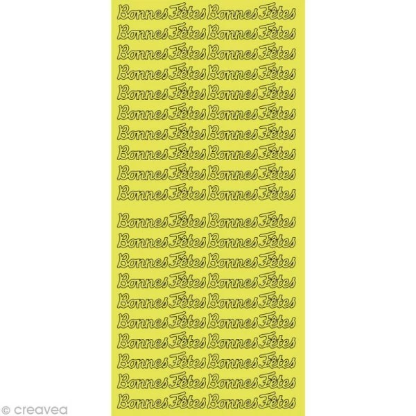 Feuille de peel-off Bonnes fêtes manuscrit couleur or pour décoration de cartes pour les fêtes de fin d’année. Les stickers peel off Bonnes fêtes or donneront une touche gracieuse à une page de scrapbooking ou encore une boîte. Prenez garde à manipuler les autocollants Bonnes fêtes dorés avec délicatesse, leur finesse les rend fragile, ce qui en fait aussi toute leur beauté.