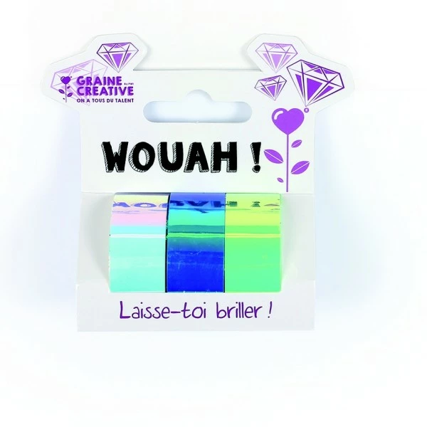 Graine Créative Assortiment De 3 Masking Tape Iridescent/Miroir Blanc- Bleu – Vert 15mmx5mm