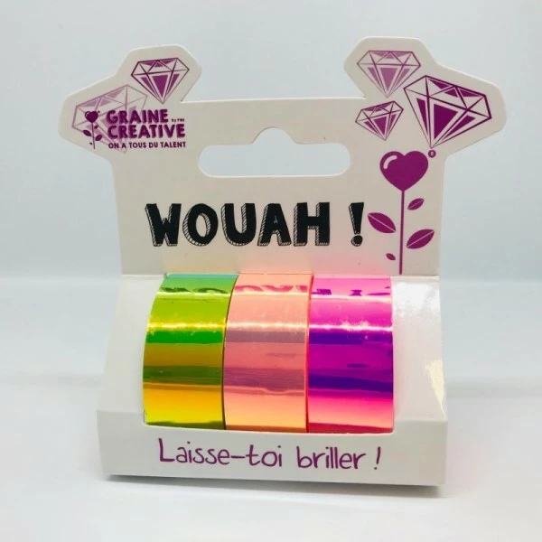 Graine Créative Assortiment De 3 Masking Tape Iridescent/Miroir Jaune – Orange – Rose 15mmx5mm