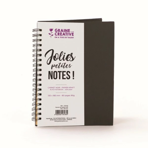 Données techniques pour Carnet noir à spirales – Papier kraft – 18 x 13 cm