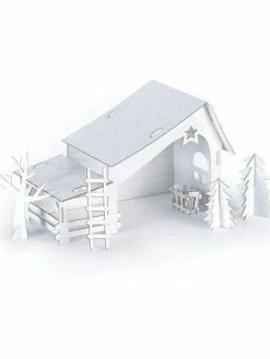 Description de Crèche pré-découpée en carton à construire soi-même 29 x 19 x 14 cm
