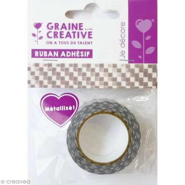 Ce rouleau de masking tape métallisé Argenté Graine Créative aux motifs Damier décorera parfaitement vos créations de Noël. Le ruban adhésif métallisé Argenté de 1,5 cm x 10 m vous permettra d’agrémenter vos pages de scrapbooking, paquets cadeau ou encore customiser une carte, un carnet.