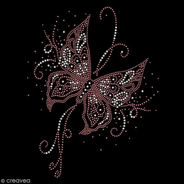 Ce motif thermocollant strass Papillon (appelé également transfert tissu thermocollant), va vous permettre de customiser tous vos vêtements, sacs en toile, chapeaux en tissu ainsi que tous les accessoires textiles que vous aurez envie de décorer ! Les strass de ce motif Papillon thermocollant, apporteront à coup sûr beaucoup de cachet à vos supports en tissus.